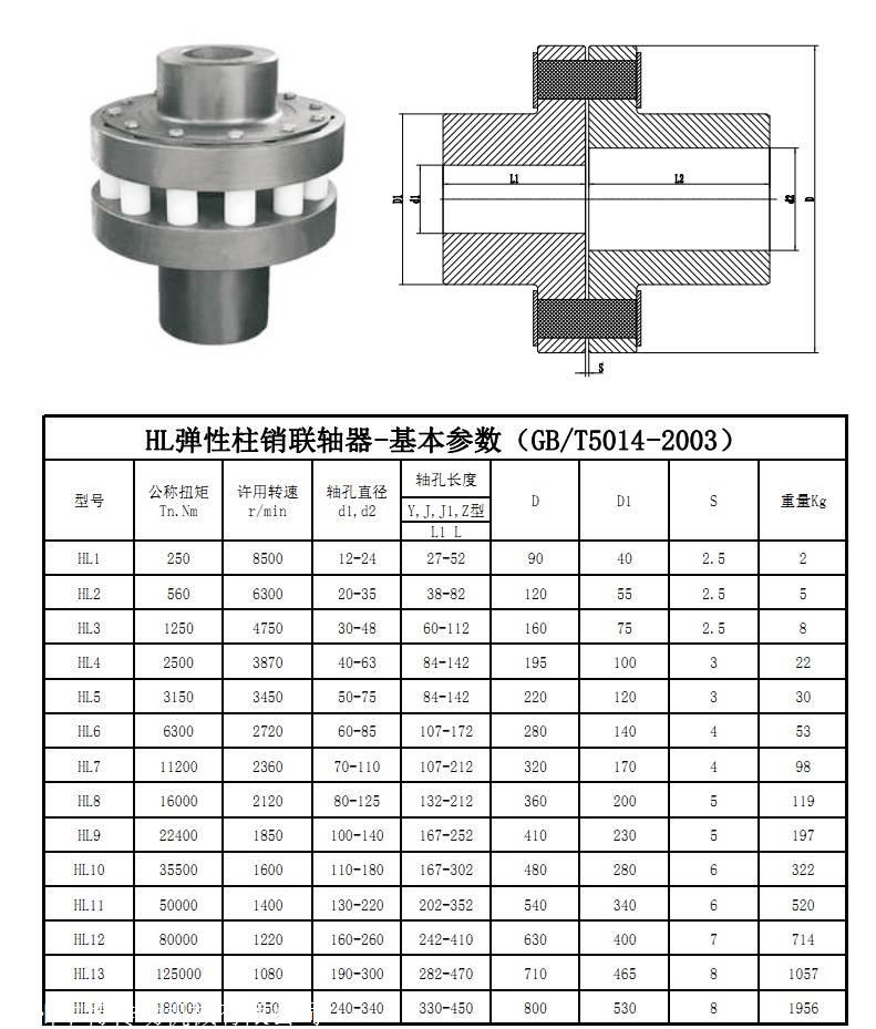 - 型号HL型弹性柱销联轴器 HLL型带自动轮弹性柱销联轴器
